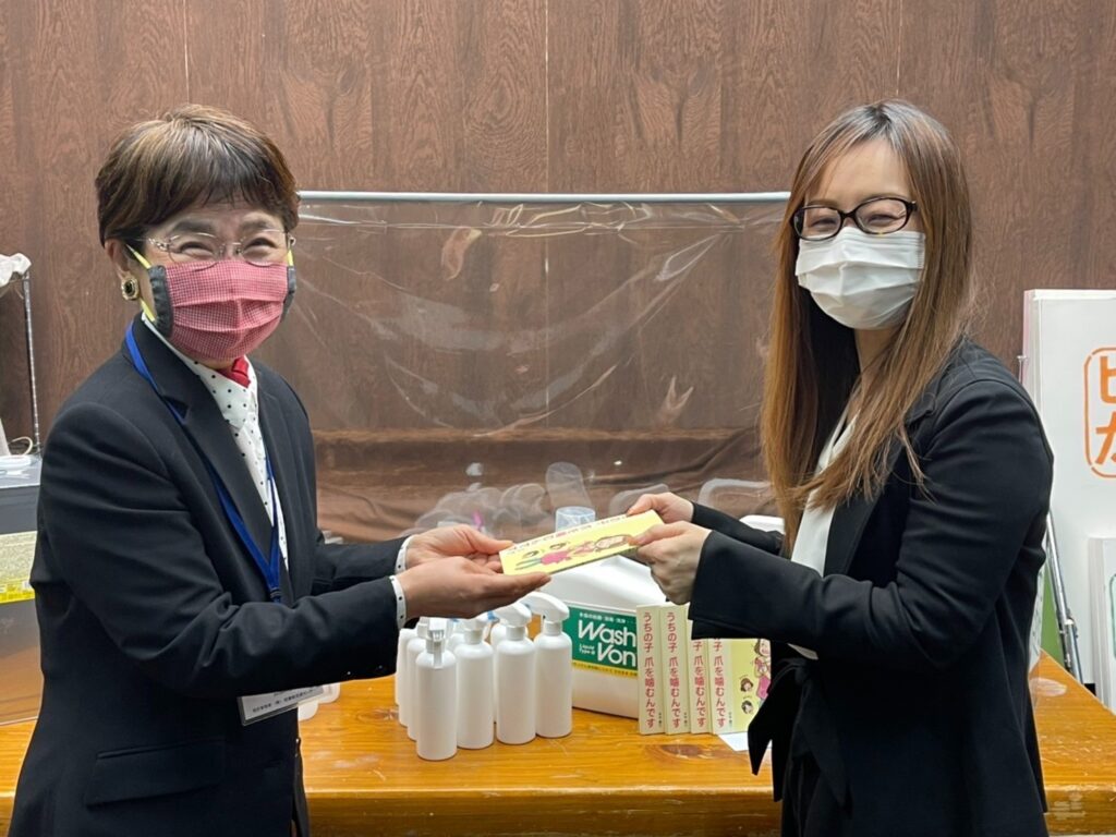 奈良県大和高田市立図書館および教育支援課へ本・消毒液・ハンドソープの寄贈いたしました